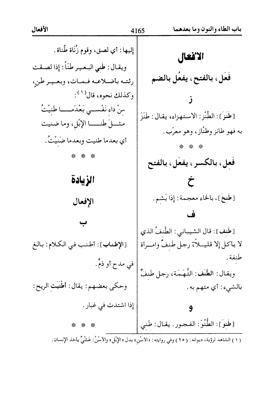 و [طَنِوَ]: الطُّنُوَ: الفجور. يقال: طَنِي إليها: أي لصق، وقوم زُنَاة طُناة.