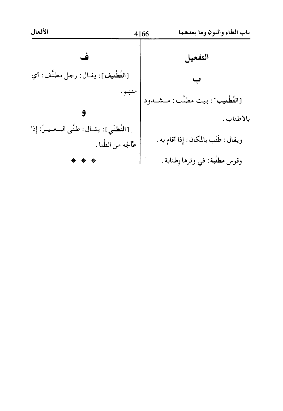 [التَّطْنيب]: بيت مطنَّب: مشدود بالأطناب.