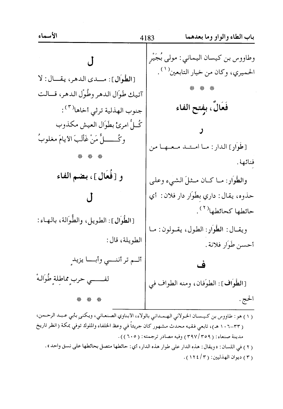 (1) هو: طاووس بن كيسان الخولاني الهمداني بالولاء، الأبناوي الصنعاني، ويكنى بأبي عبد الرحمن، (33 - 106 هـ)، تابعي فقيه محدث مشهور كان جريئاً في وعظ الخلفاء والملوك توفي بمكة (انظر تاريخ مدينة صنعاء: (359/ 397) وفيه مصادر ترجمته: (605)).