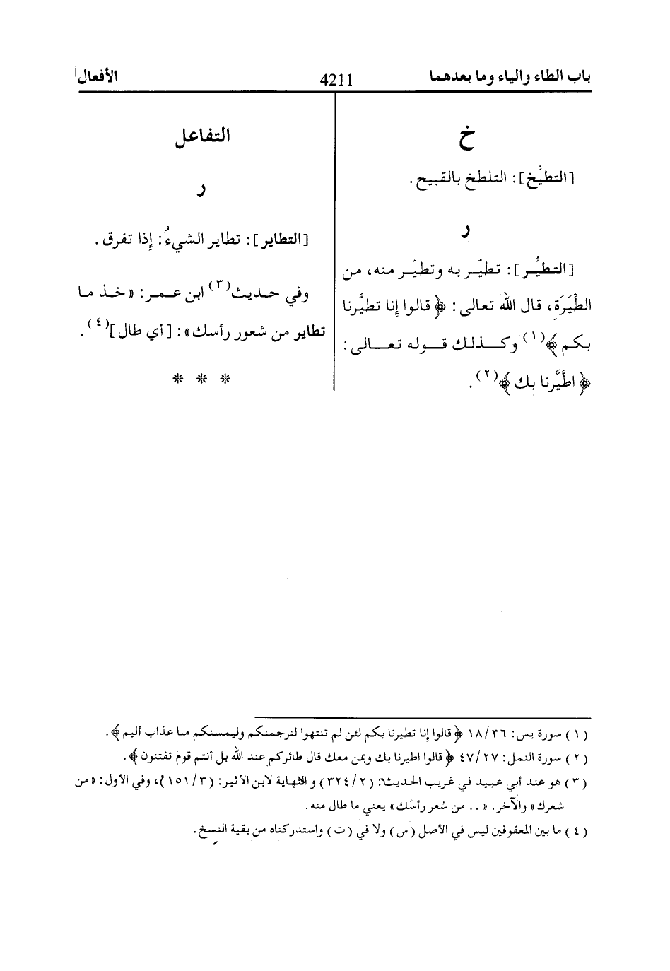 (1) سورة يس: 36/ 18 قاالُوا إِنّاا تَطَيَّرْناا بِكُمْ لَئِنْ لَمْ تَنْتَهُوا لَنَرْجُمَنَّكُمْ وَلَيَمَسَّنَّكُمْ مِنّاا عَذاابٌ أَلِيمٌ.