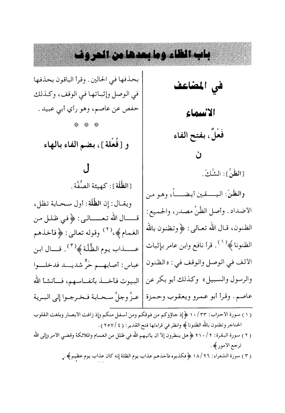 باب الظاء وما بعدها من الحروف [في المضاعف]