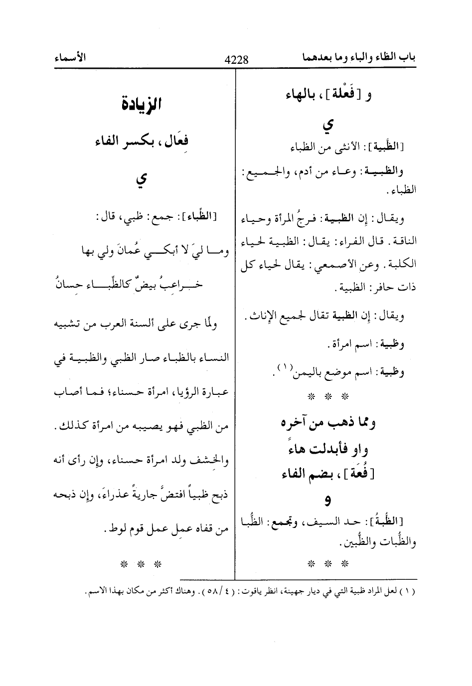 (1) لعل المراد ظبية التي في ديار جهينة، انظر ياقوت: (4/ 58). وهناك أكثر من مكان بهذا الاسم.