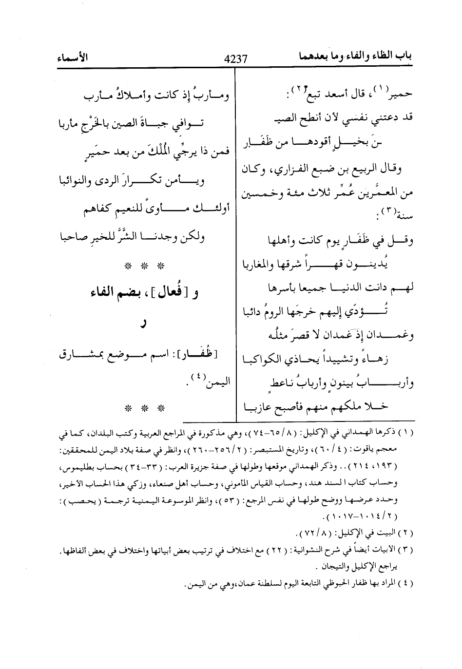 (4) المراد بها ظفار الحبوظي التابعة اليوم لسلطنة عمان، وهي من اليمن.