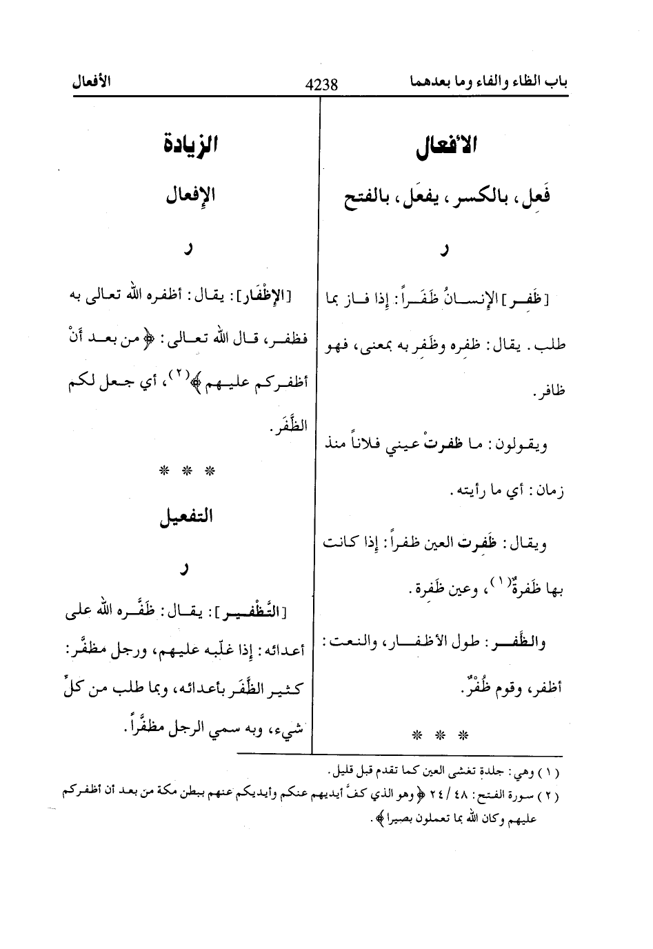 [الإظْفَار]: يقال: أظفره الله تعالى به فظفر، قال الله تعالى: مِنْ بَعْدِ أَنْ أَظْفَرَكُمْ عَلَيْهِمْ «2»، أي جعل لكم الظَّفَر.