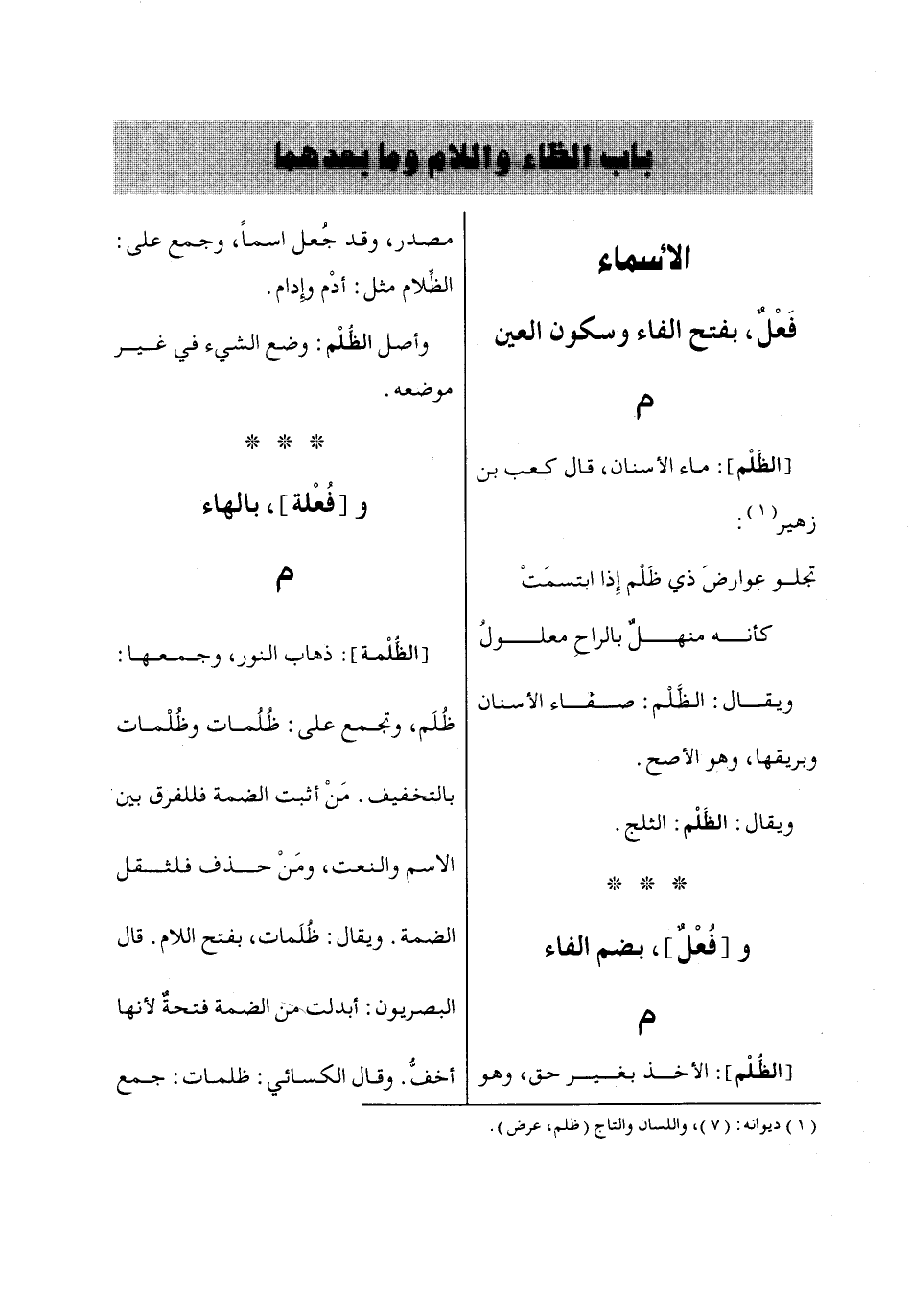 باب الظاء واللام وما بعدهما