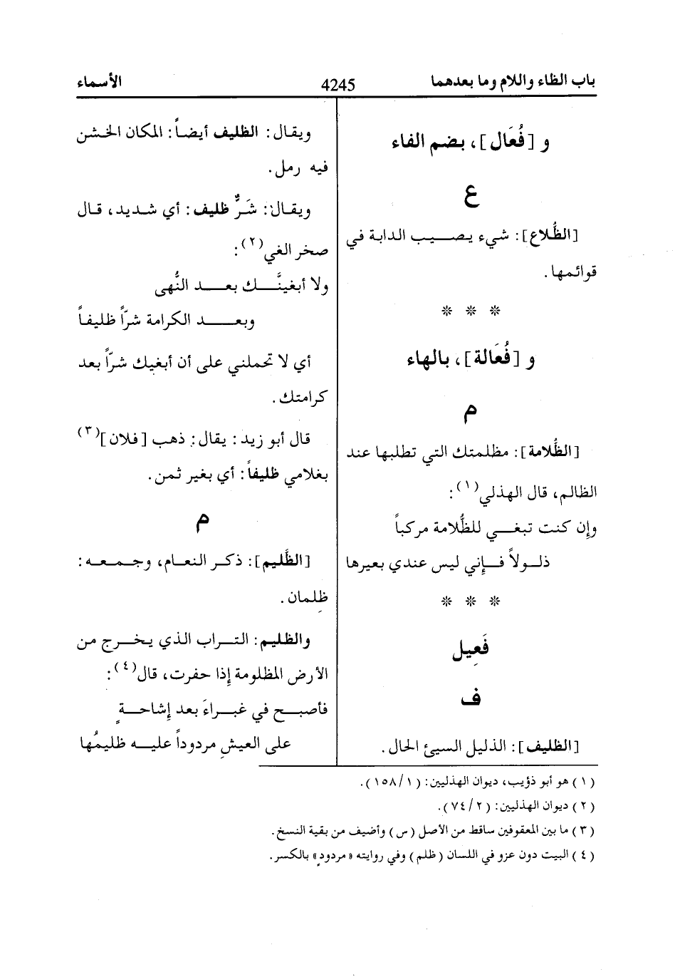 (4) البيت دون عزو في اللسان (ظلم) وفي روايته
