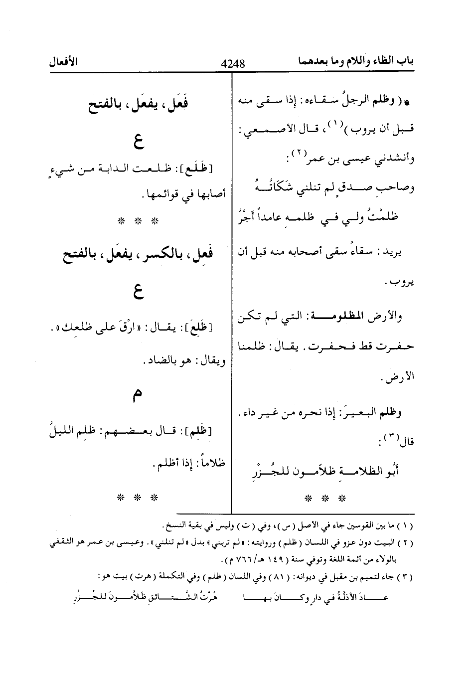 (3) جاء لتميم بن مقبل في ديوانه: (81) وفي اللسان (ظلم) وفي التكملة (هرت) بيت هو: