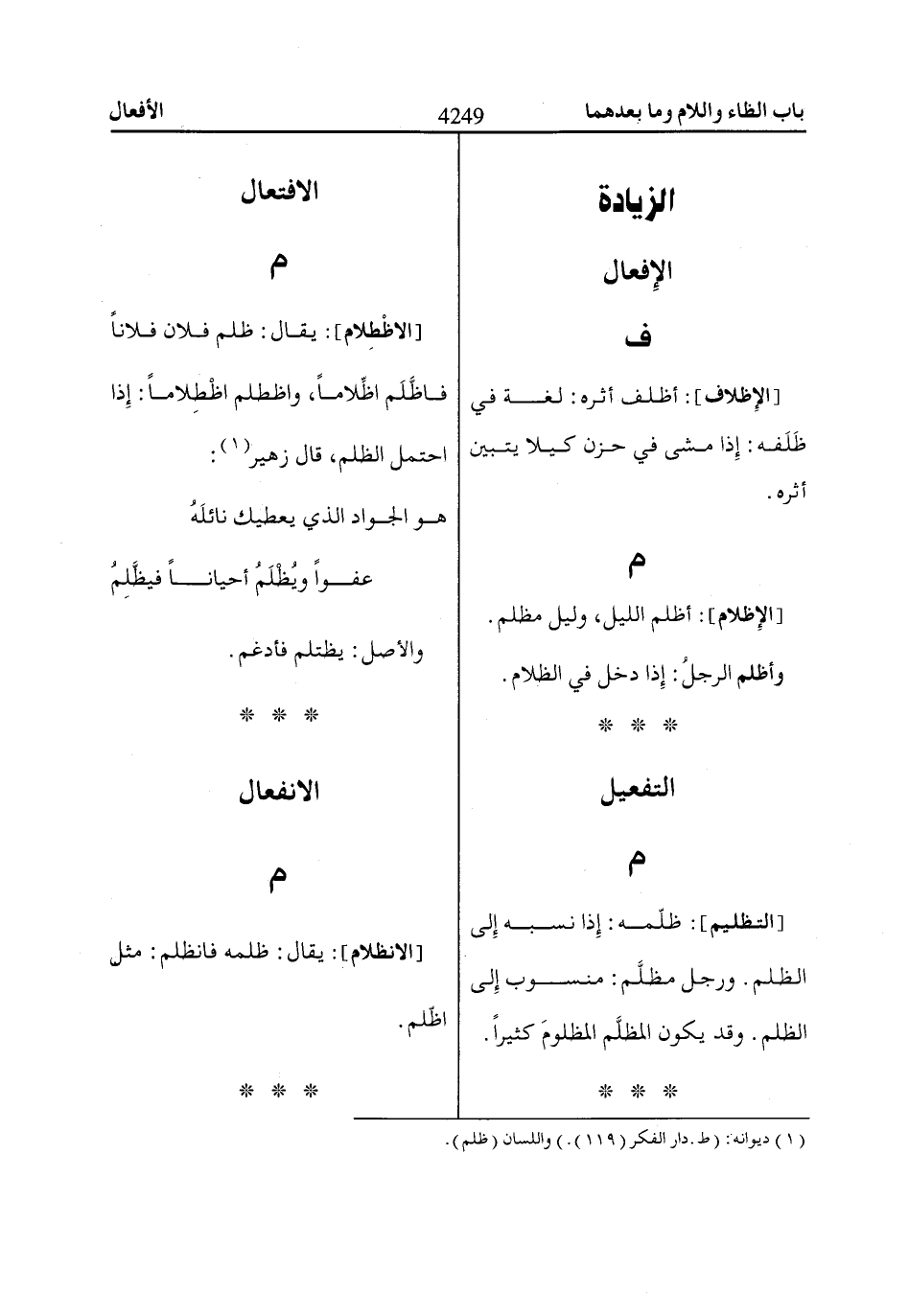 [الاظْطِلام]: يقال: ظلم فلان فلاناً فاظَّلَم اظِّلاماً، واظطلم اظْطِلاماً: إذا احتمل الظلم، قال زهير «1»: