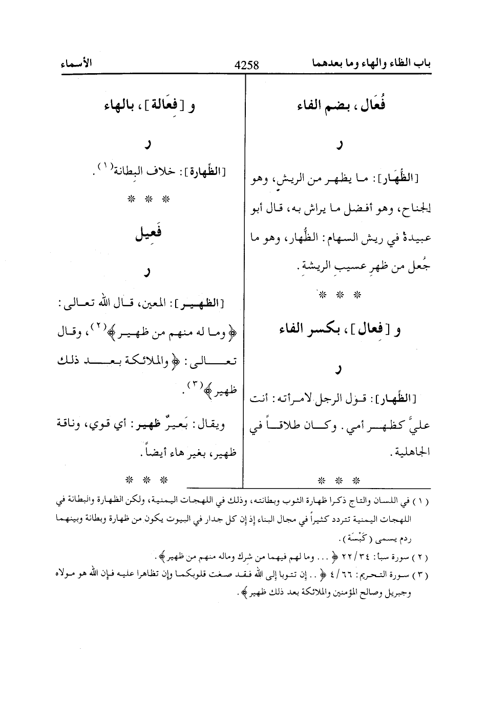 (1) في اللسان والتاج ذكرا ظهارة الثوب وبطانته، وذلك في اللهجات اليمنية، ولكن الظهارة والبطانة في اللهجات اليمنية تتردد كثيراً في مجال البناء إذ إن كل جدار في البيوت يكون من ظهارة وبطانة وبينهما ردم يسمى (كَبْسَة).