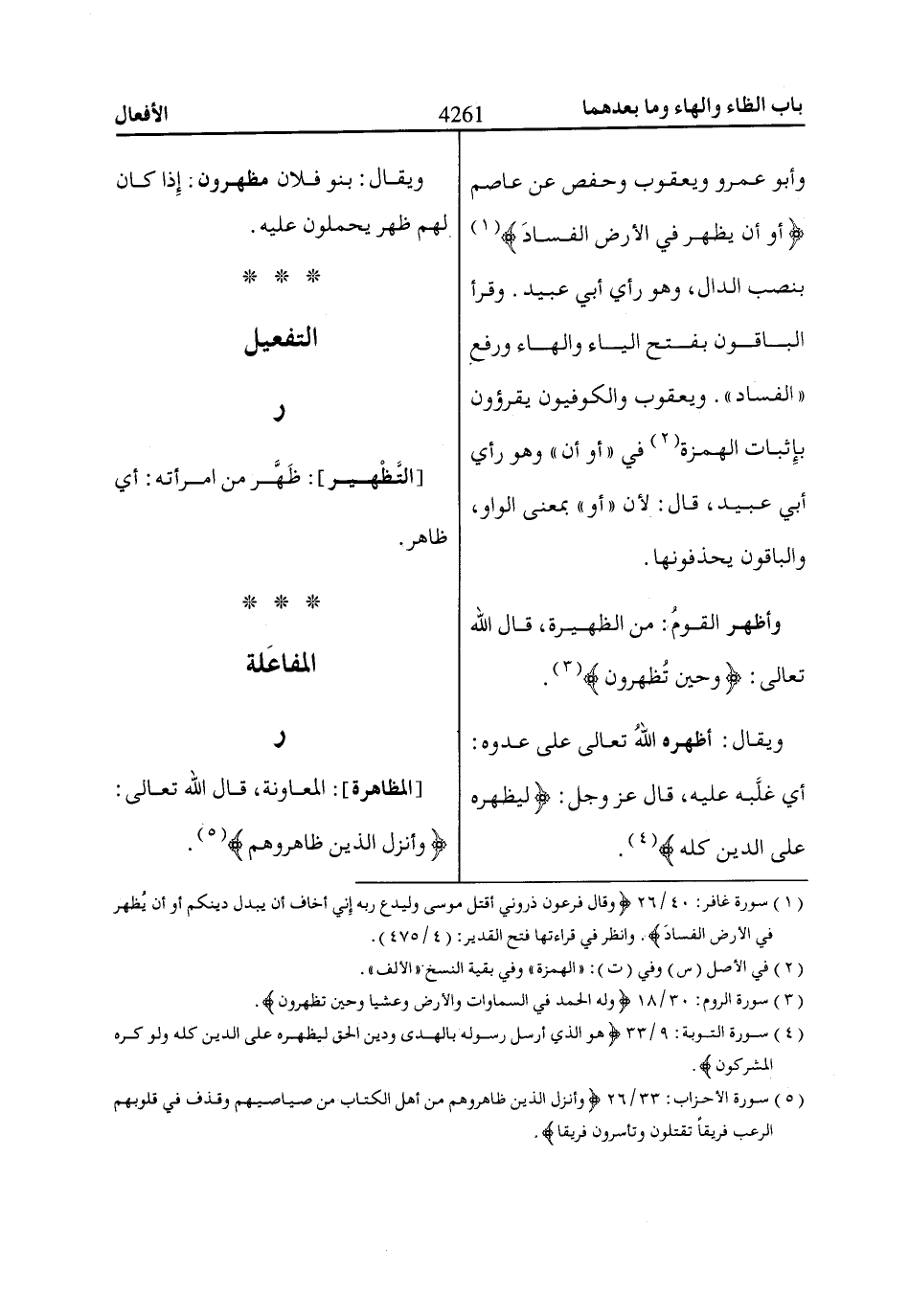 (5) سورة الأحزاب: 33/ 26 وَأَنْزَلَ الَّذِينَ ظااهَرُوهُمْ مِنْ أَهْلِ الْكِتاابِ مِنْ صَيااصِيهِمْ وَقَذَفَ فِي قُلُوبِهِمُ الرُّعْبَ فَرِيقاً تَقْتُلُونَ وَتَأْسِرُونَ فَرِيقاً.