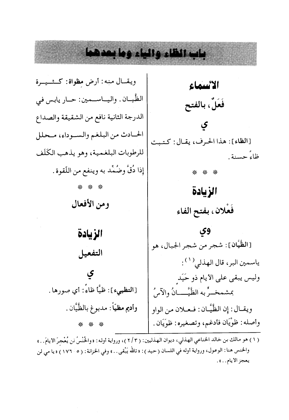 [الظَّيَّان]: شجر من شجر الجبال، هو ياسمين البر، قال الهذلي «1»: