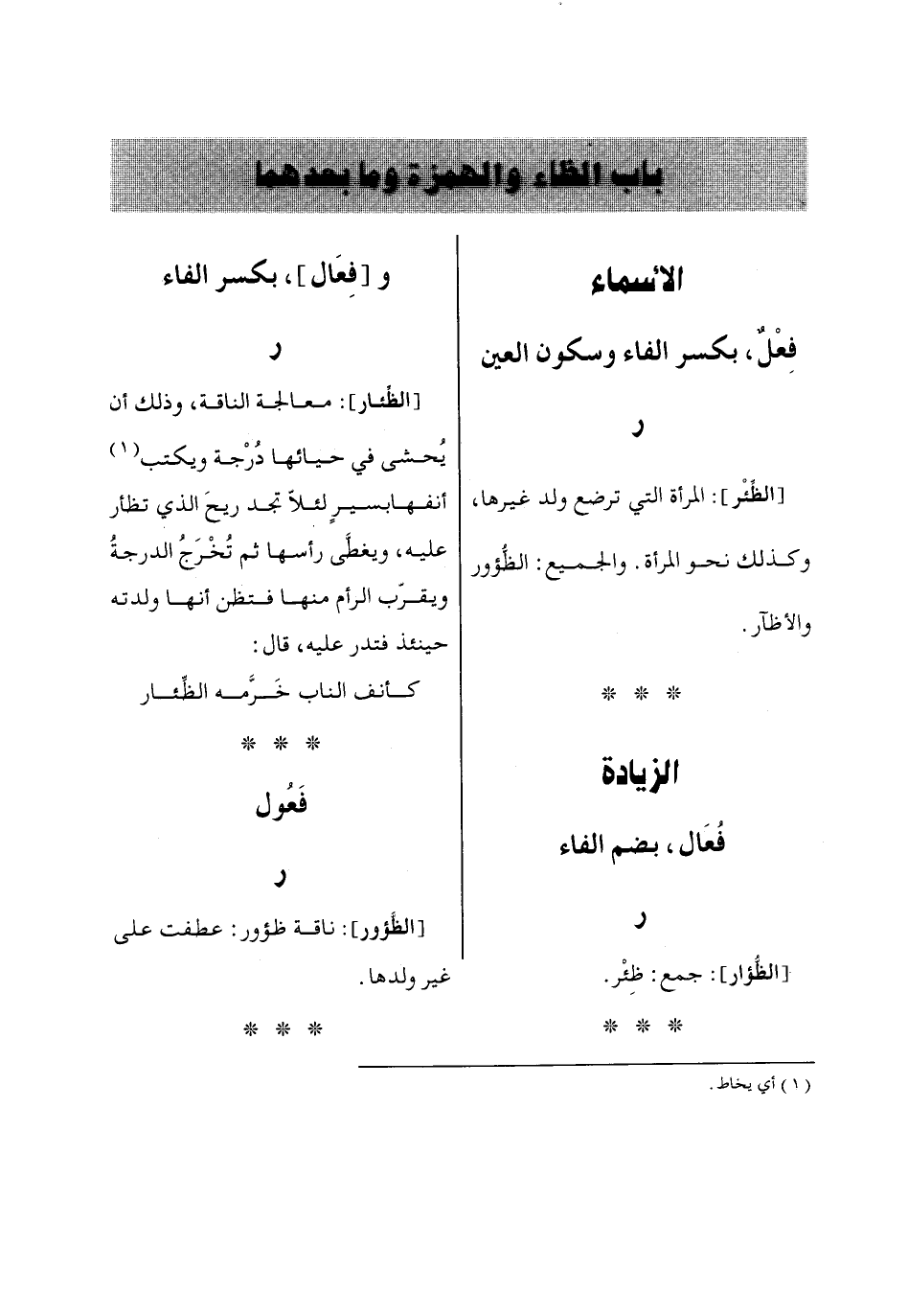باب الظاء والهمزة وما بعدهما