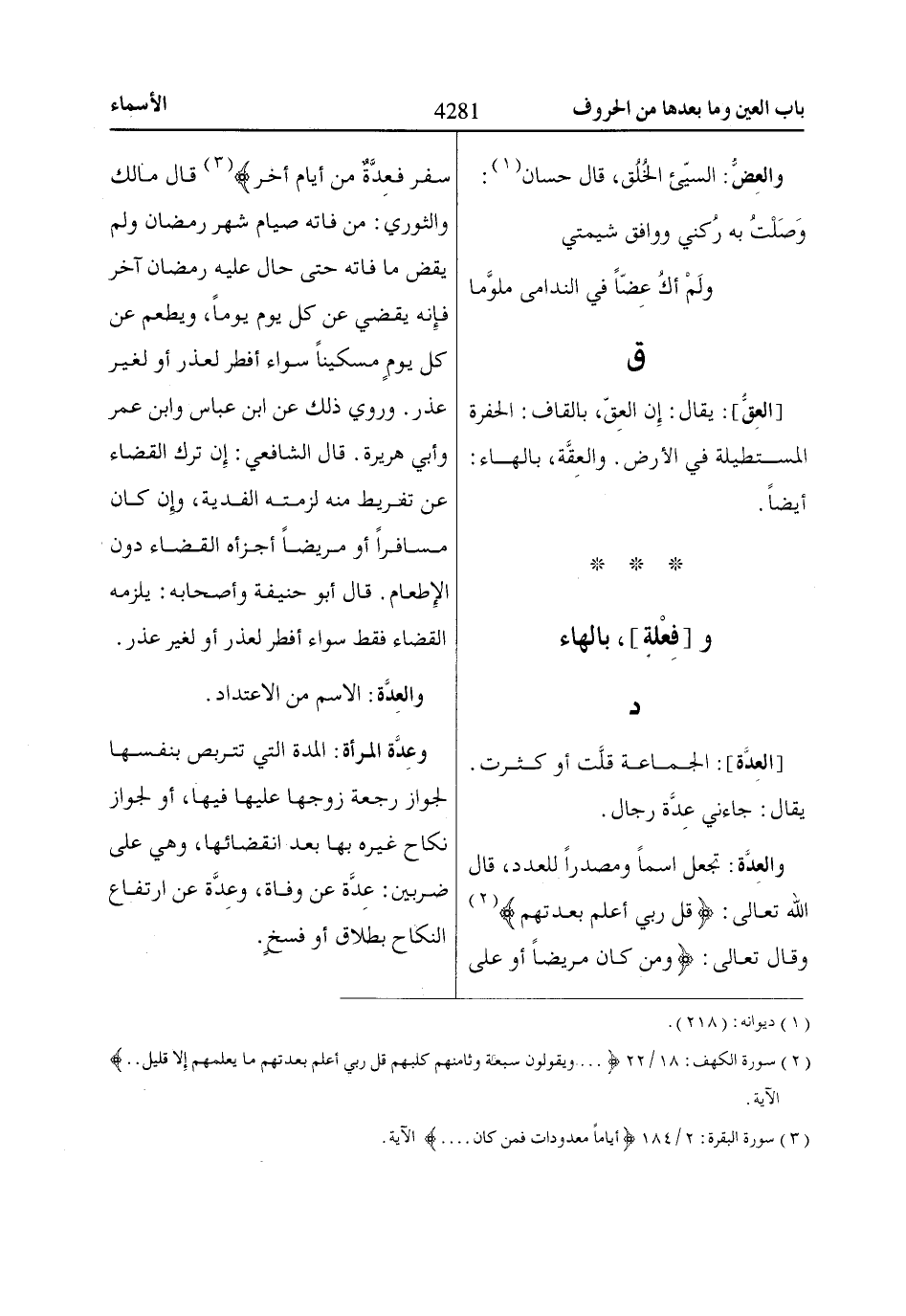 والعِدَّة: تجعل اسماً ومصدراً للعدد، قال الله تعالى: قُلْ رَبِّي أَعْلَمُ بِعِدَّتِهِمْ «2» وقال تعالى: وَمَنْ كاانَ مَرِيضاً أَوْ عَلى سَفَرٍ فَعِدَّةٌ مِنْ أَيّاامٍ أُخَرَ «3»