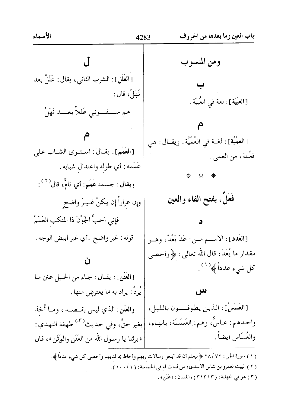 (3) هو في النهاية: (3/ 313) واللسان: «عَنَن».