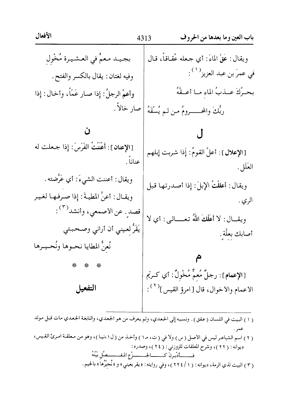 [الإعمام]: رجلٌ مُعِمٌّ مُخْوِلٌ: أي كريم الأعمام والأخوال، قال [امرؤ القيس] «2»: