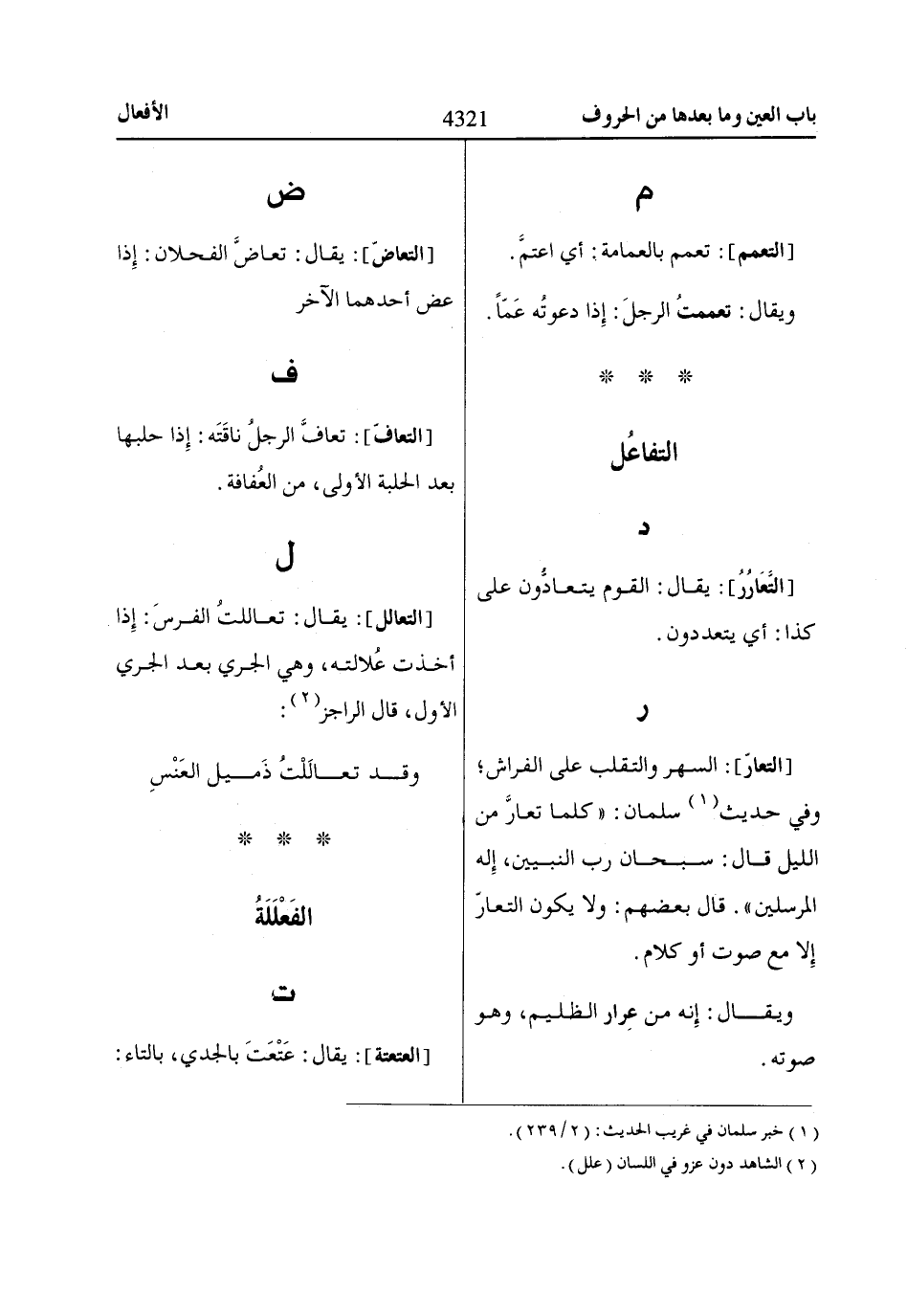 (2) الشاهد دون عزو في اللسان (علل).