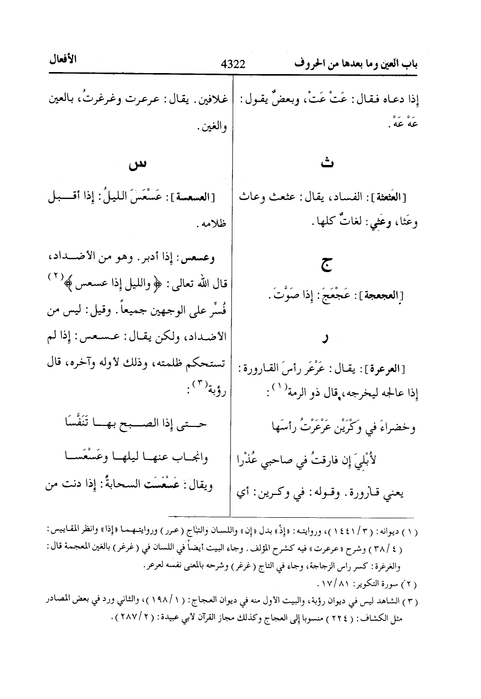 وعسعس: إذا أدبر. وهو من الأضداد، قال الله تعالى: وَاللَّيْلِ إِذاا عَسْعَسَ «2»