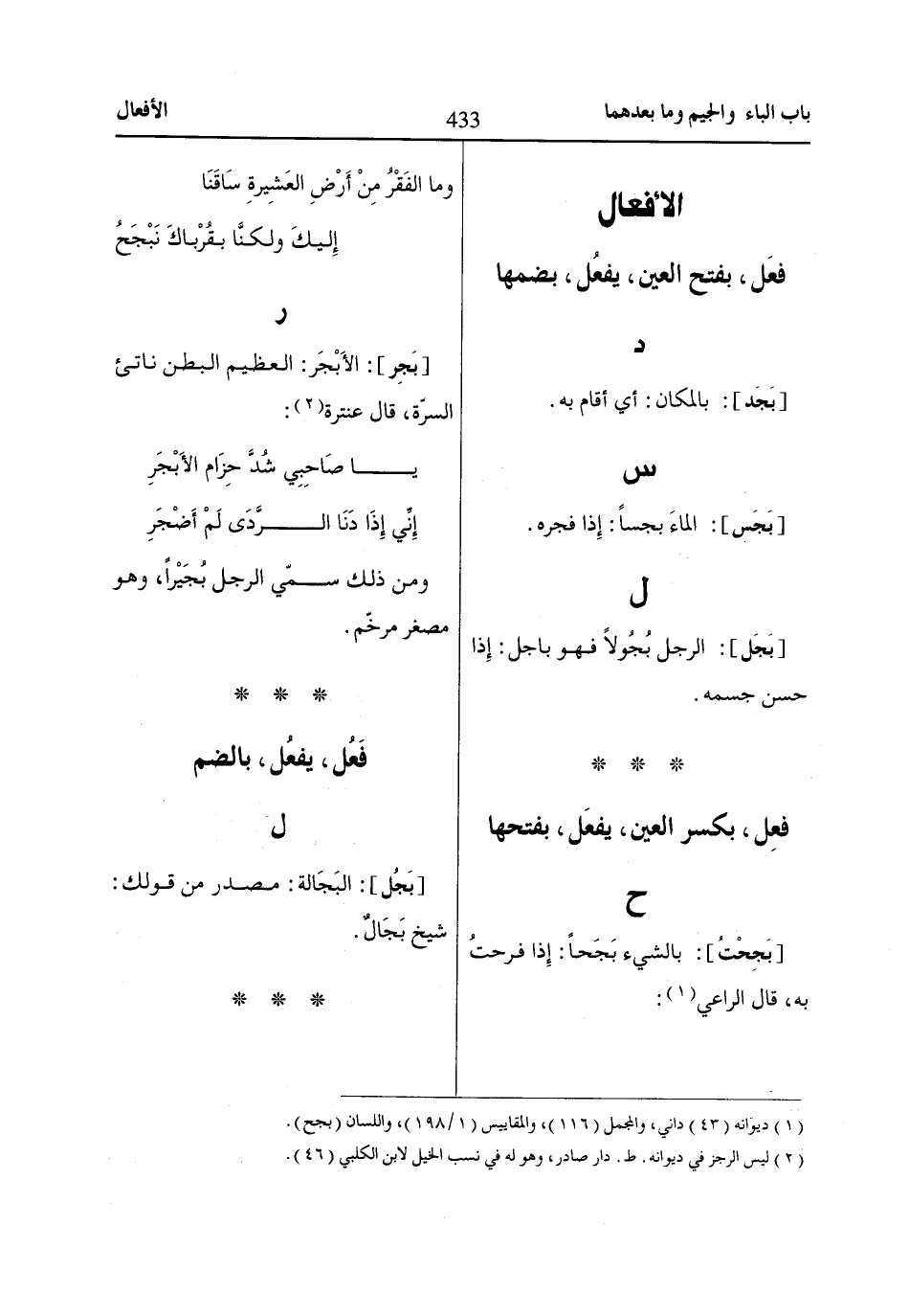 (1) ديوانه (43) داني، والمجمل (116)، والمقاييس (1/ 198)، واللسان (بجح).
