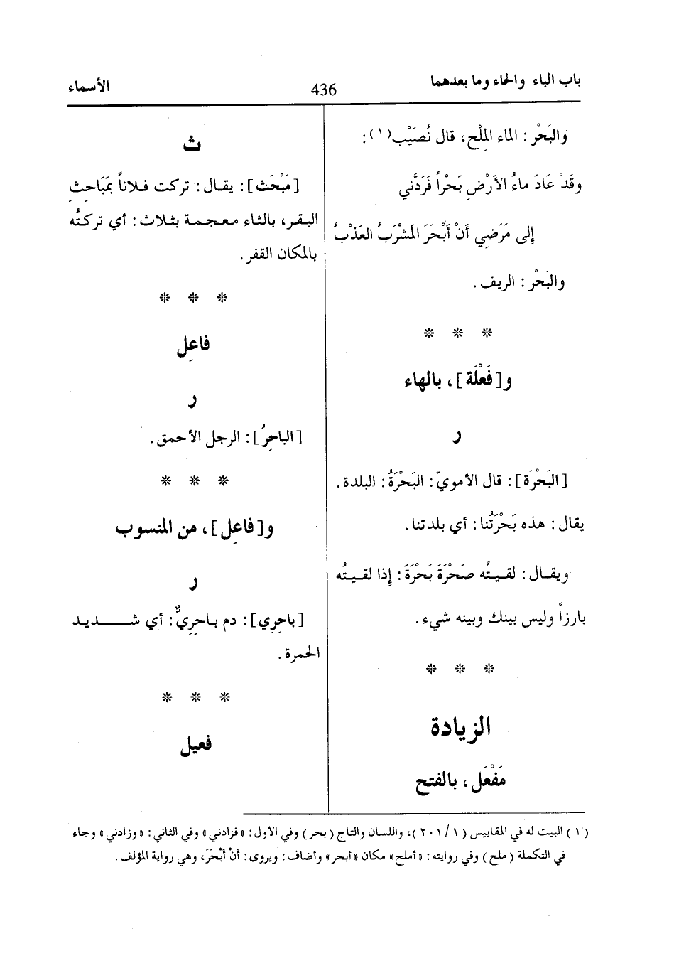 (1) البيت له في المقاييس (1/ 201)، واللسان والتاج (بحر) وفي الأول: «فزادني» وفي الثاني: «وزادني» وجاء في التكملة (ملح) وفي روايته: «أملح» مكان «أبحر» وأضاف: ويروى: أَنْ أَبْحَرَ، وهي رواية المؤلف.