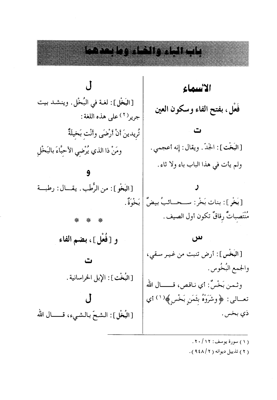 [البَخْل]: لغة في البُخْل. وينشد بيت جرير «2» على هذه اللغة: