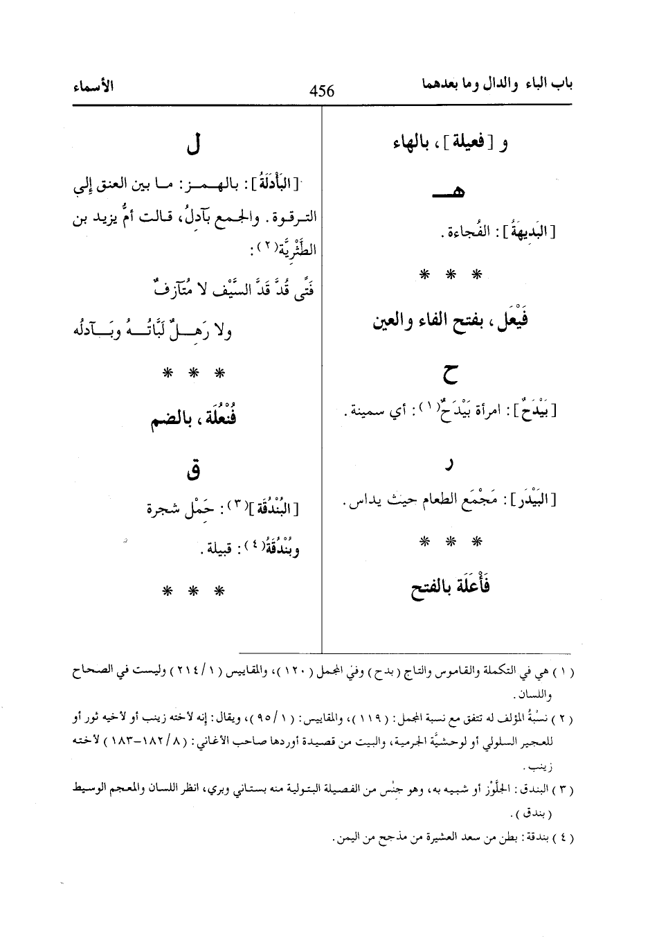 (1) هي في التكملة والقاموس والتاج (بدح) وفي المجمل (120)، والمقاييس (1/ 214) وليست في الصحاح واللسان.