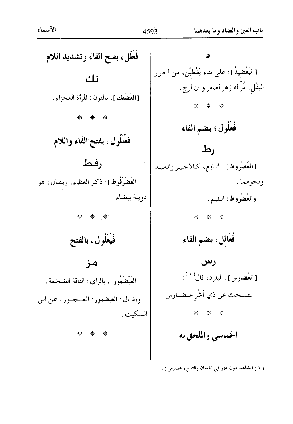 [العُضارِس]: البارد، قال «1»: