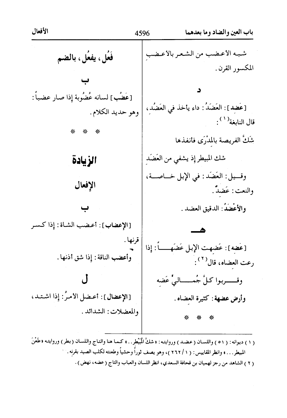 (2) الشاهد من رجز لهميان بن قحافة السعدي، انظر اللسان والعباب والتاج (عضه، نهض).