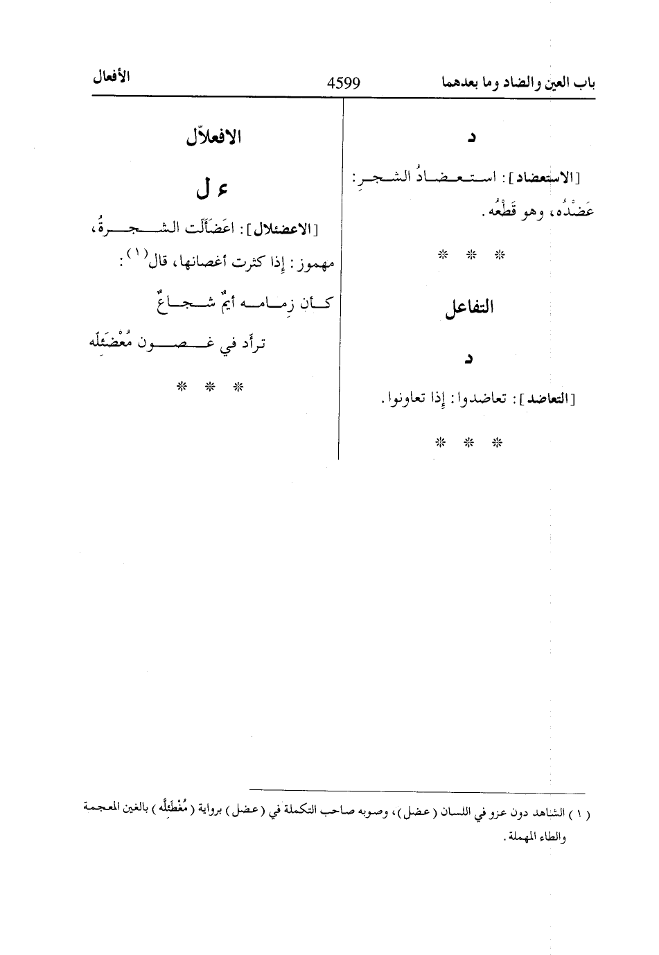 [الاعضئلال]: اعَضَأَلّت الشجرةُ، مهموز: إذا كثرت أغصانها، قال «1»: