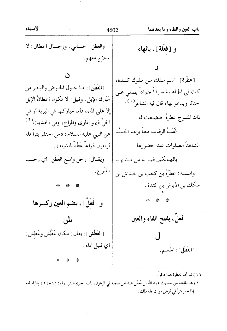 ويقال: رجل واسع العَطَن: أي رحب الذِّراع.
