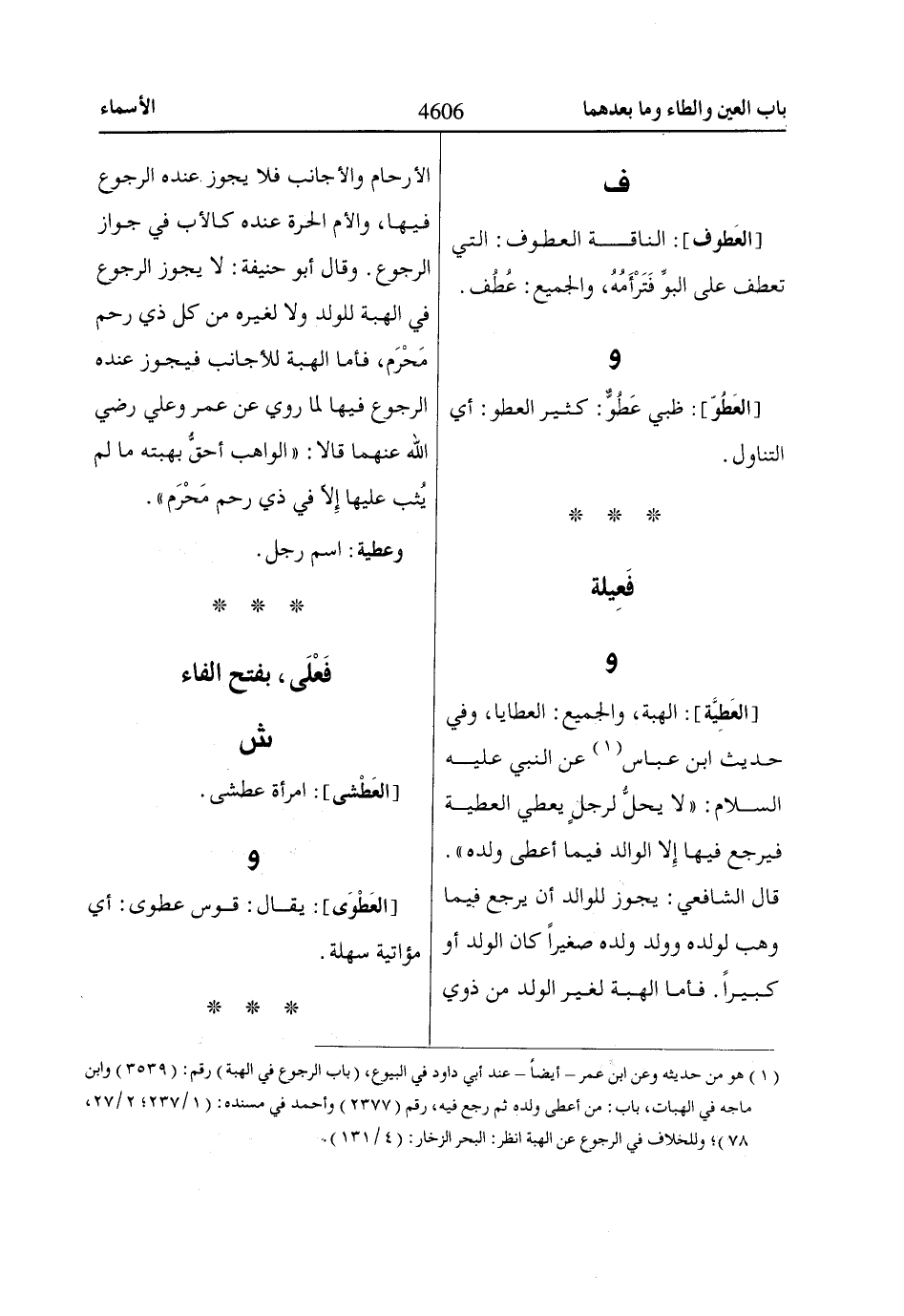 وفي حديث ابن عباس «1» عن النبي عليه السلام: «لا يحلُّ لرجلٍ يعطي العطية فيرجع فيها إلا الوالد فيما أعطى ولده»