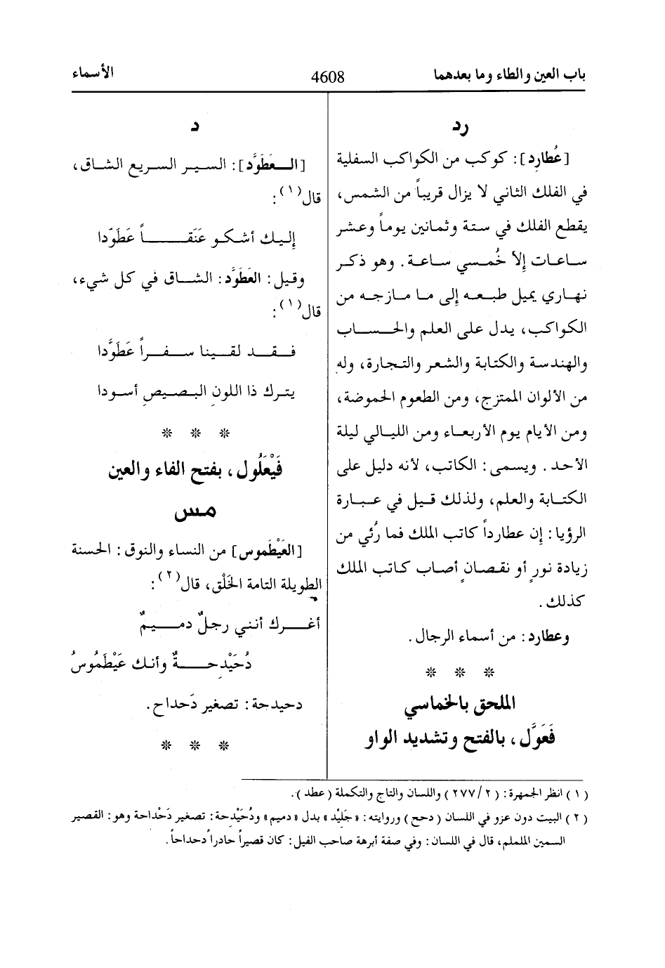 (1) انظر الجمهرة: (2/ 277) واللسان والتاج والتكملة (عطد).