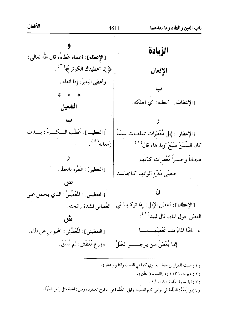 [الإعطان]: أعطن الإبل: إذا تركها في العطن حول الماء، قال لبيد «2»: