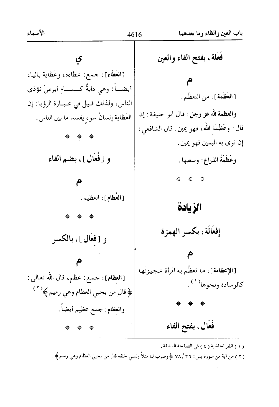 قاالَ مَنْ يُحْيِ الْعِظاامَ وَهِيَ رَمِيمٌ «2» والعِظام: جمع عظيم أيضاً.