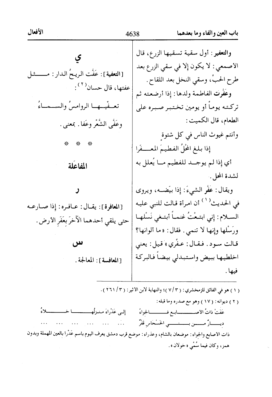 [التعفية]: عَفَّت الريحُ الدار: مثل عفتها، قال حسان «2»: