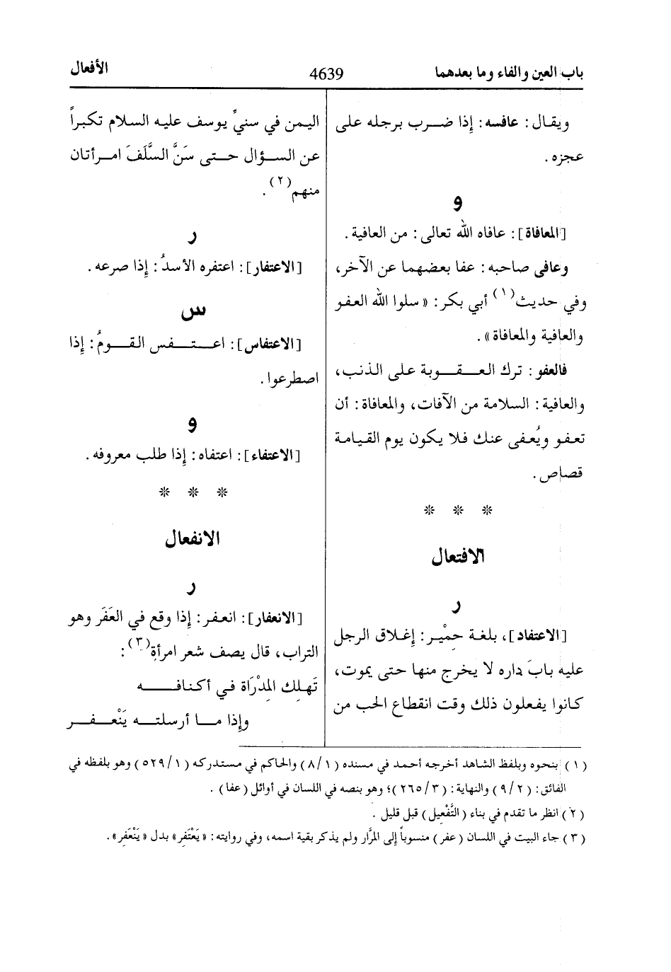 (1) بنحوه وبلفظ الشاهد أخرجه أحمد في مسنده (1/ 8) والحاكم في مستدركه (1/ 529) وهو بلفظه في الفائق: (2/ 9) والنهاية: (3/ 265)؛ وهو بنصه في اللسان في أوائل (عفا).