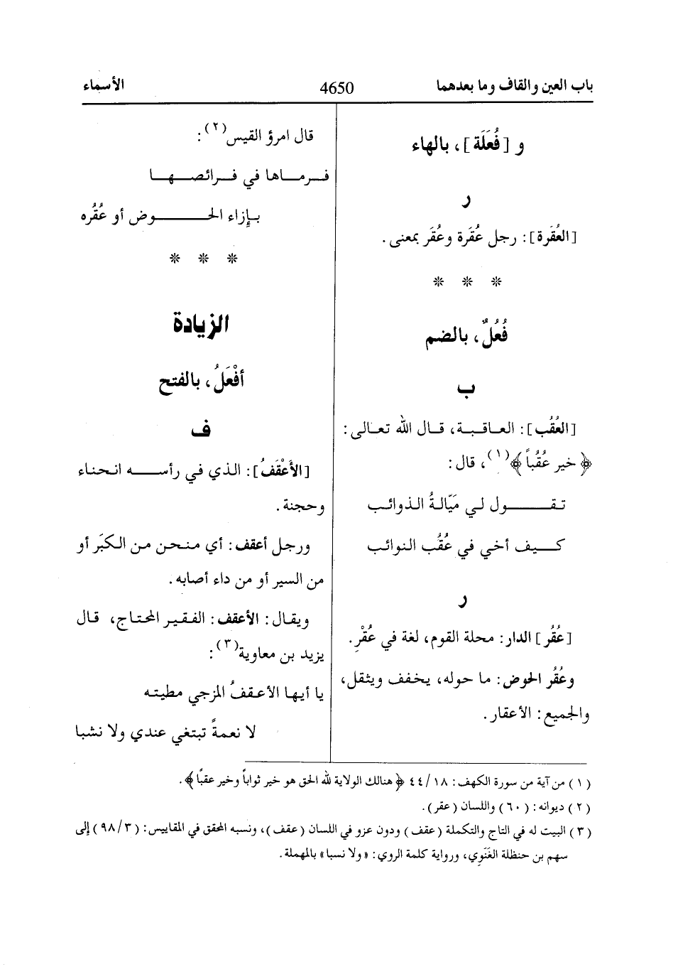 (3) البيت له في التاج والتكملة (عقف) ودون عزو في اللسان (عقف)، ونسبه المحقق في المقاييس: (3/ 98) إلى سهم بن حنظلة الغَنَوِي، ورواية كلمة الروي: