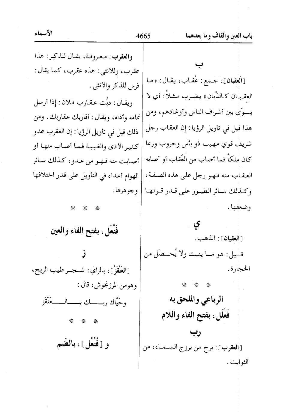 والعقرب: معروفة، يقال للذكر: هذا عقرب، وللأنثى: هذه عقرب، كما يقال: