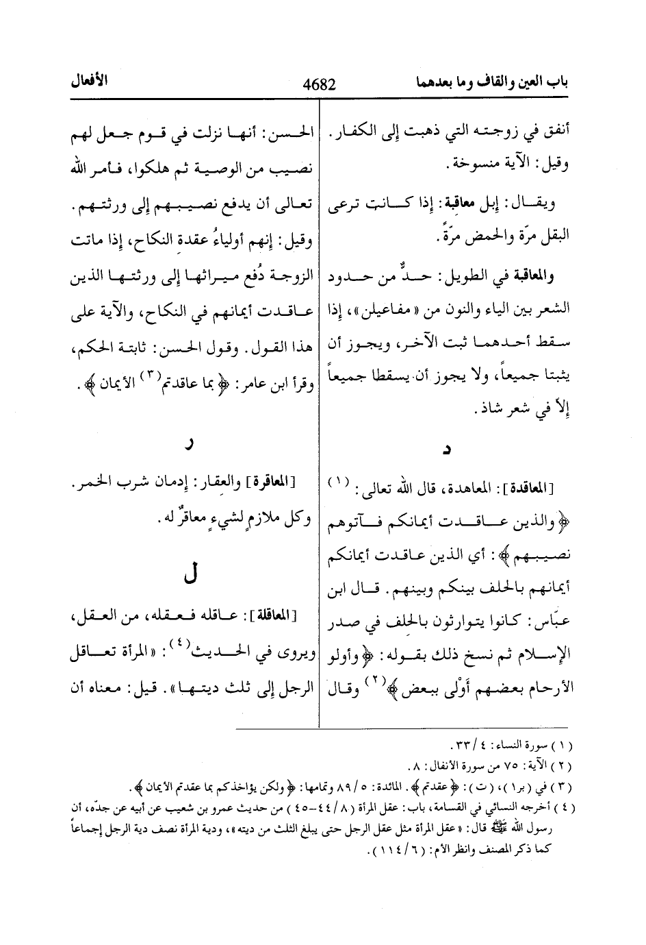 [المعاقدة]: المعاهدة، قال الله تعالى: «1»