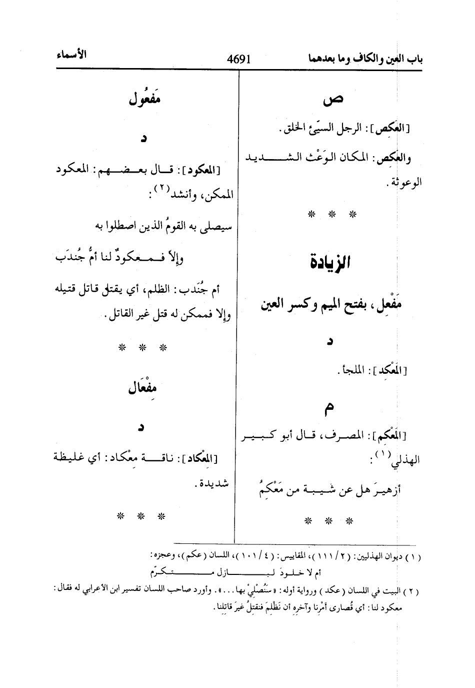 (1) ديوان الهذليين: (2/ 111)، المقاييس: (4/ 101)، اللسان (عكم)، وعجزه: