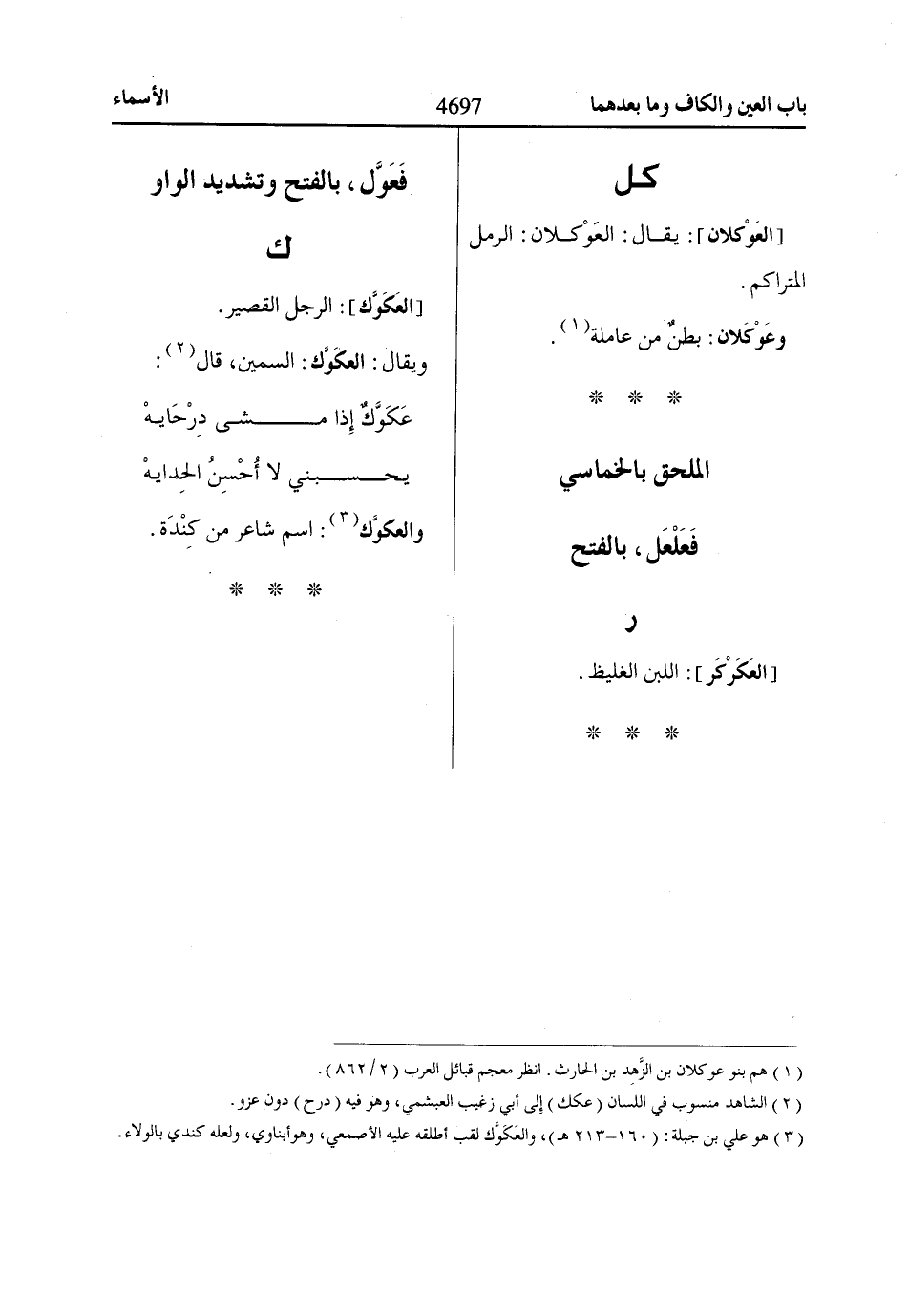 (3) هو علي بن جبلة: (160 - 213 هـ)، والعَكَوَّك لقب أطلقه عليه الأصمعي، وهو أبناوي، ولعله كندي بالولاء.