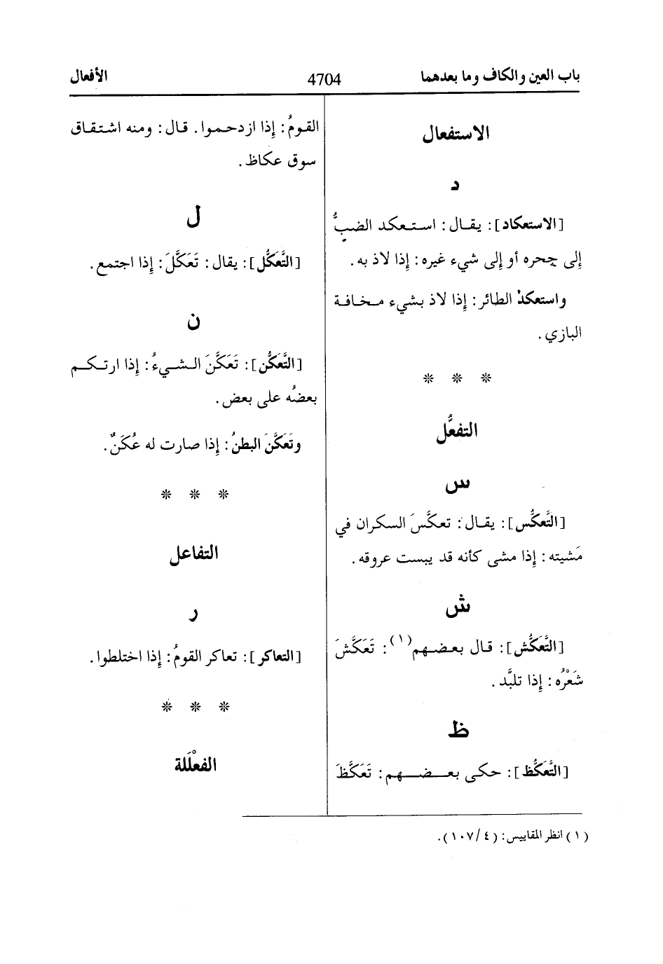 [الاستعكاد]: يقال: استعكد الضبُّ إلى جحره أو إلى شيء غيره: إذا لاذ به.
