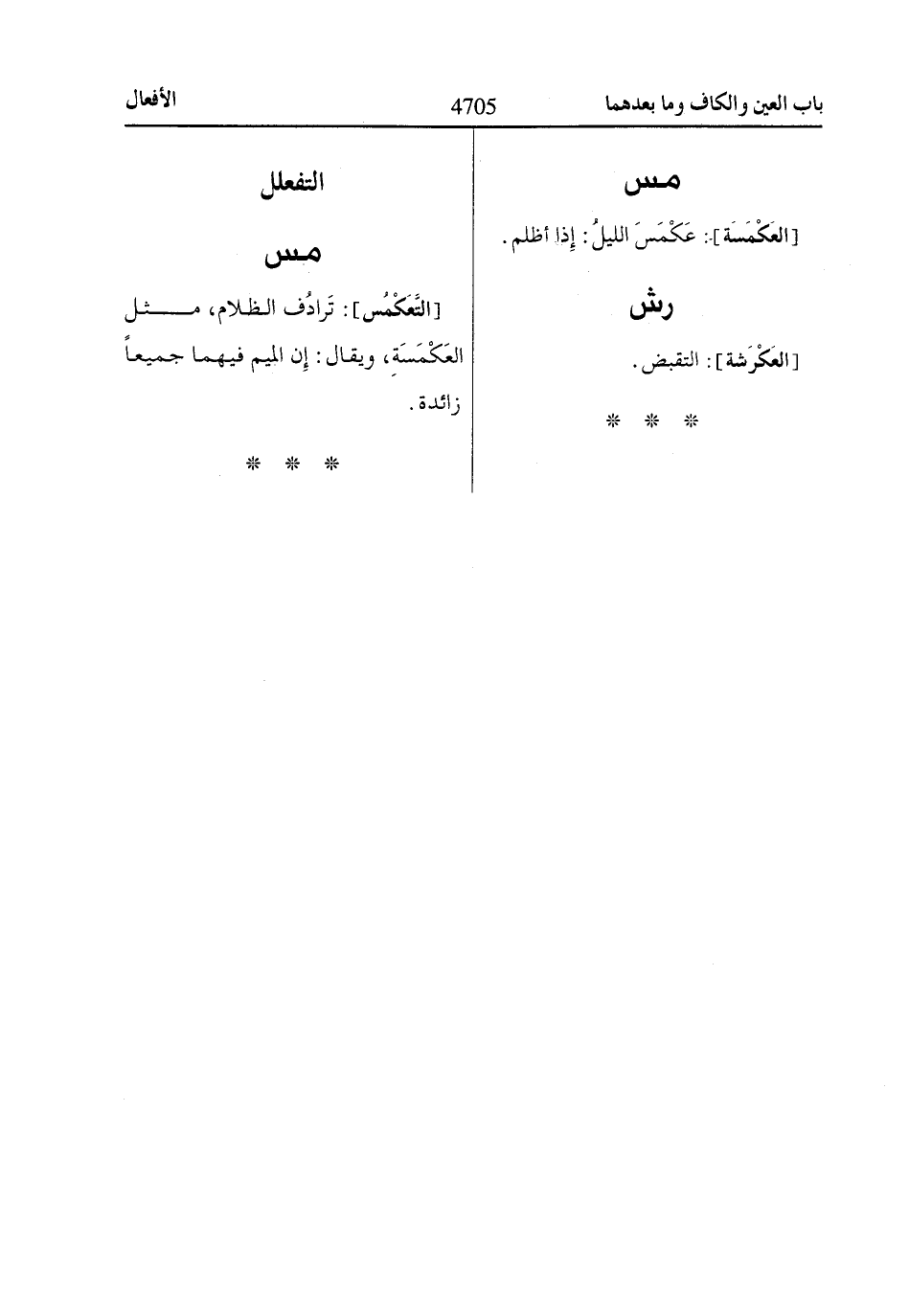 [العَكْمَسَة]: عَكْمَسَ الليلُ: إذا أظلم.