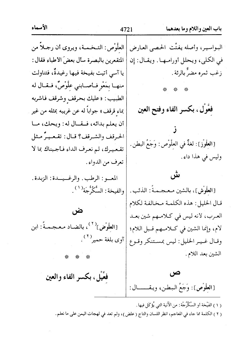 [العِلَّوْز]: لغةٌ في العِلَّوْص: وَجَعُ البطن.