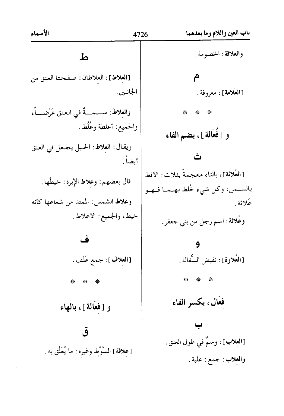 [العُلاثة]، بالثاء معجمةً بثلاث: الأقط بالسمن، وكل شيء خُلط بهما فهو عُلاثة.