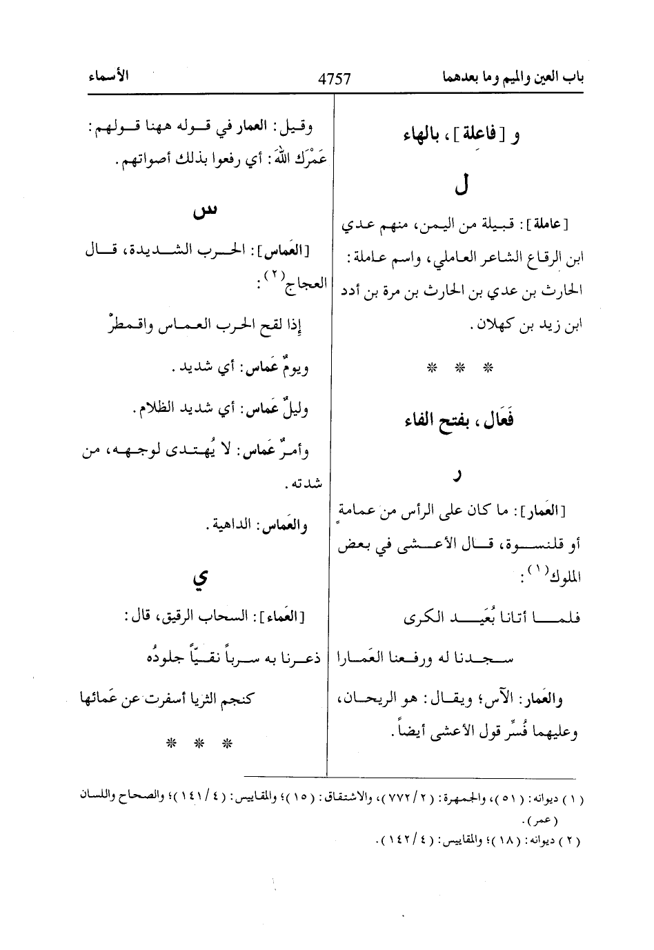 [العَماس]: الحرب الشديدة، قال العجاج «2»: