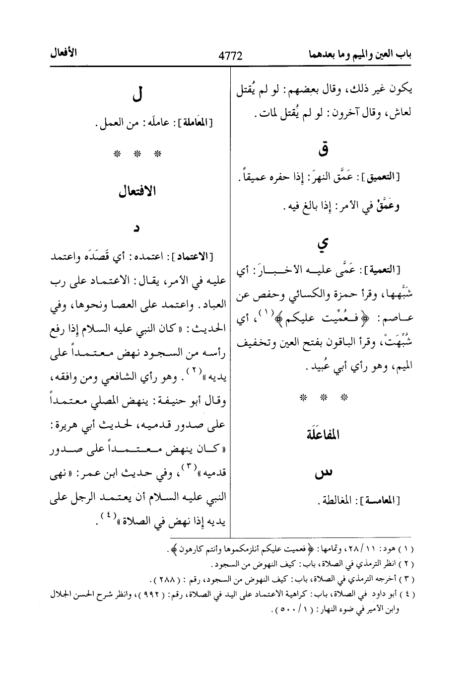 وفي حديث ابن عمر: «نهى النبي عليه السلام أن يعتمد الرجل على يديه إذا نهض في الصلاة» «4».