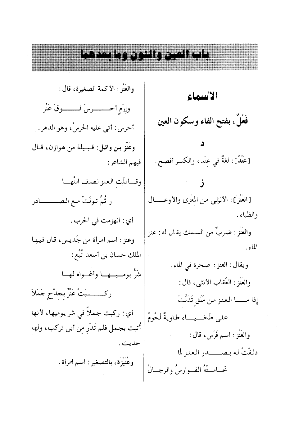وعنز: اسم امرأة من جَديس، قال فيها الملك حسان بن أسعد تُبَّع: