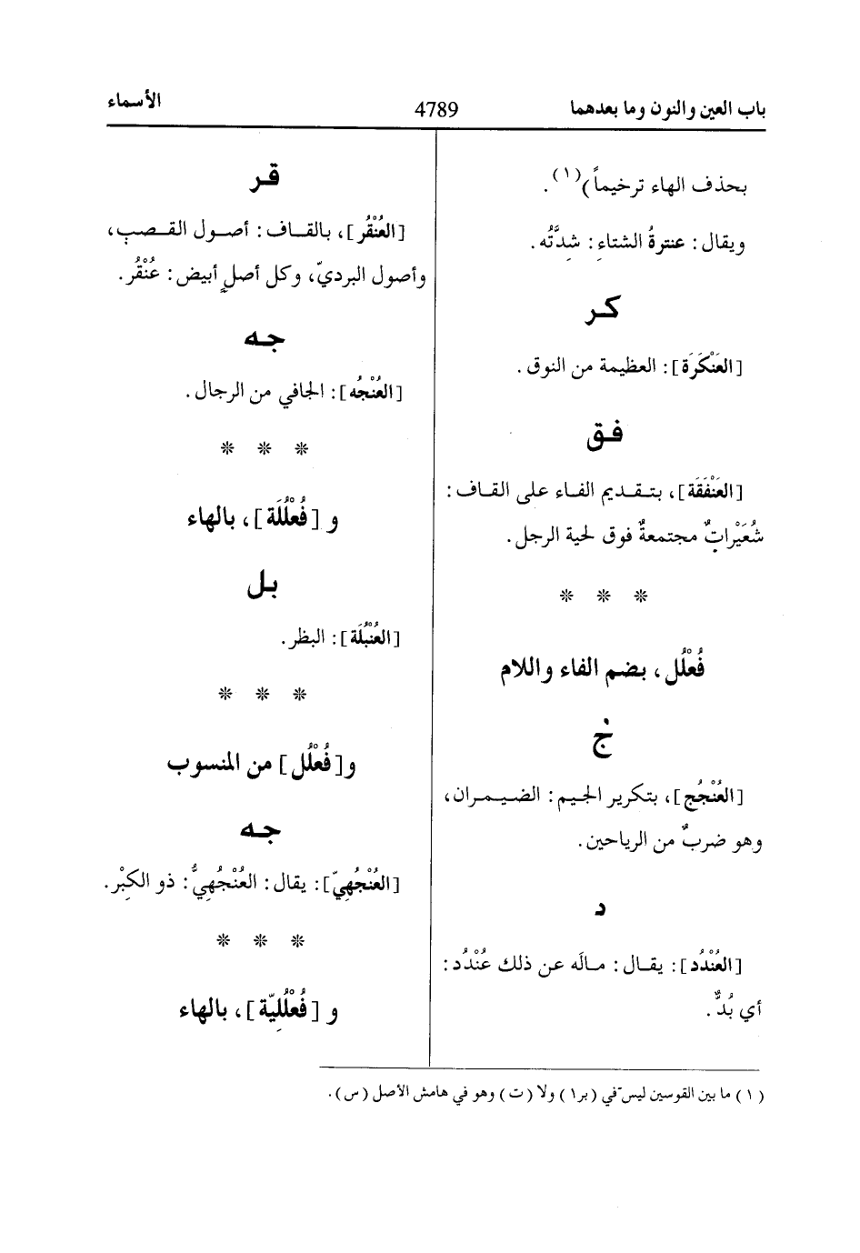 [العُنْجُهِيّ]: يقال: العُنْجُهِيُّ: ذو الكِبْر.