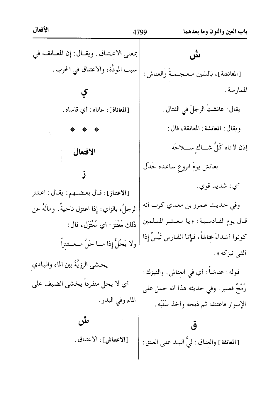 ويقال: المعانشة: المعانقة، قال: