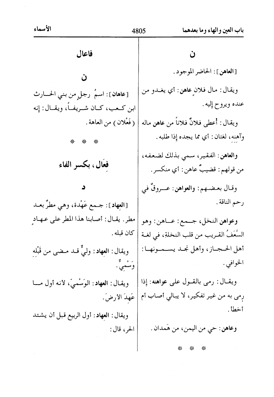 ويقال: مال فلانٍ عاهن: أي يغدو من عنده ويروح إليه.